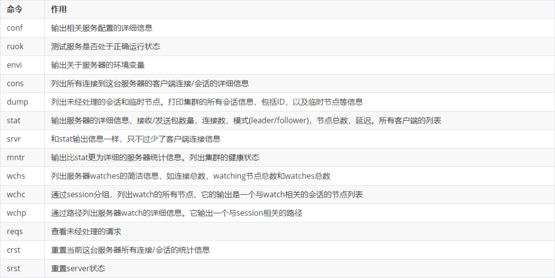 # egrep -v "^#|^$" /oldboyedu/softwares/zookeeper/conf/zoo.cfg ··· 4lw.commands.whitelist=* ··· # manager-zk.sh restart # 修改以后记得重启服务使之生效!| 基于telnet查看zookeeper集群的状态信息