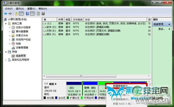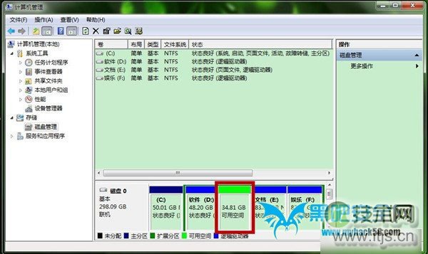 windows 7系统默认位置是C盘怎么创建新的磁盘分区