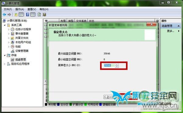 第九步、选择简单卷大小,可以自我调节,再点击“下一步”。亿华云计算