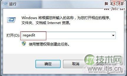 打开注册表,可以用运行指令直接来打开注册表,“开始”--“运行”---“regedit”,如图 7所示。
