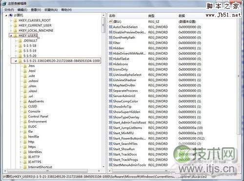 打开注册表之后,找到找到“HKEY_USERS”项,云服务器展开,找到“S-1-5-21-1229272821-515967899-68200330-1000”(此项不同的电脑可能键名不一样)点击展开。 如图 8所示。