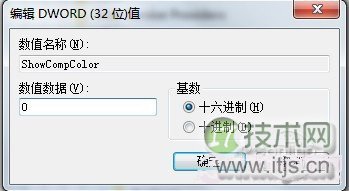 双击“ShowCompColor”键,弹出键值对话框,将数值数据“1”改为“0”,确定。如图 11所示。