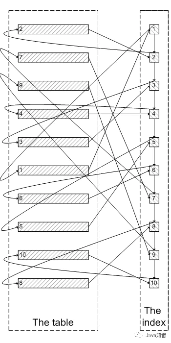 肯定会有人问:既然一开始是企商汇利用索引的,为什么不先沿着索引叶子节点查询到最后需要的5个节点,然后再去聚簇索引中查询实际数据。这样只需要5次随机I/O,类似于下面图片的过程: