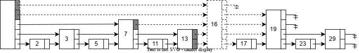Figure.4 Linked List with fingers to the 2ith forward elements