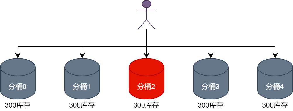 如果用户的id为10002,目前库存的分桶数量设置为5,则用户抢购下单时,会将当前用户抢购下单时,扣减商品库存的请求路由到分桶2,如下图所示。