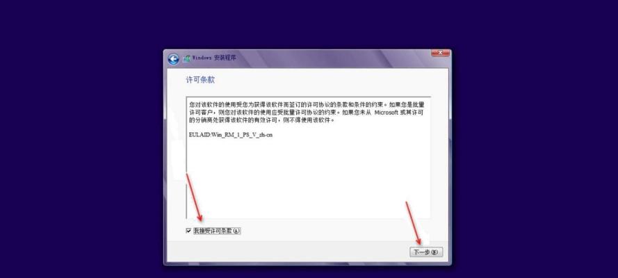在安装过程中,你需要阅读并同意Windows8的授权协议条款。请仔细阅读其中的内容,然后点击“同意”继续。