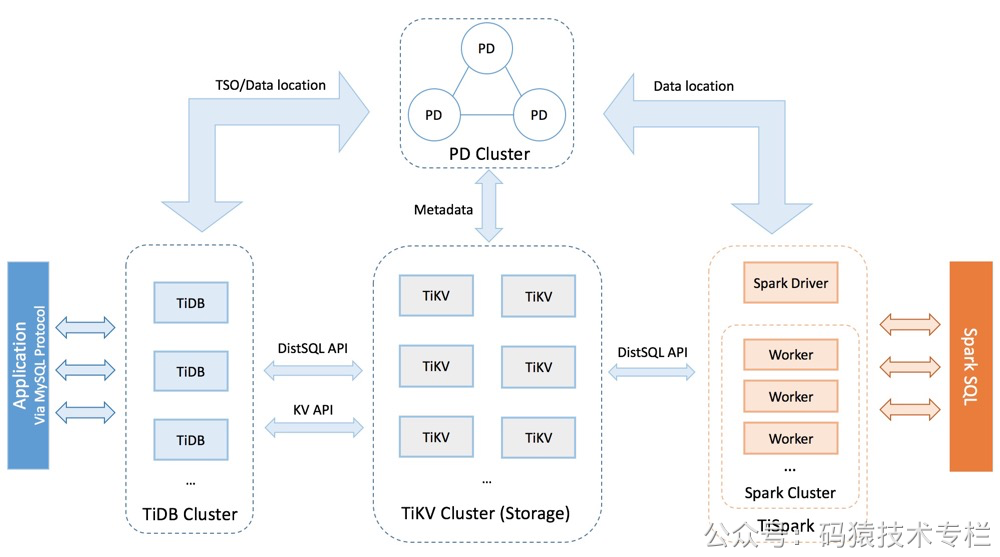 要深入了解 TiDB 的水平扩展和高可用特点,首先需要了解 TiDB 的整体架构。TiDB 集群主要包括三个核心组件:TiDB Server,PD Server 和 TiKV Server,此外,还有用于解决用户复杂 OLAP 需求的 TiSpark 组件。关注公z号:码猿技术专栏,回复关键词:1111 获取阿里内部Java性能优化手册!