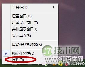 第二步:假如没有你想找的桌面图标,我们“任务栏”空白处点击“右键”选择“属性”。下角