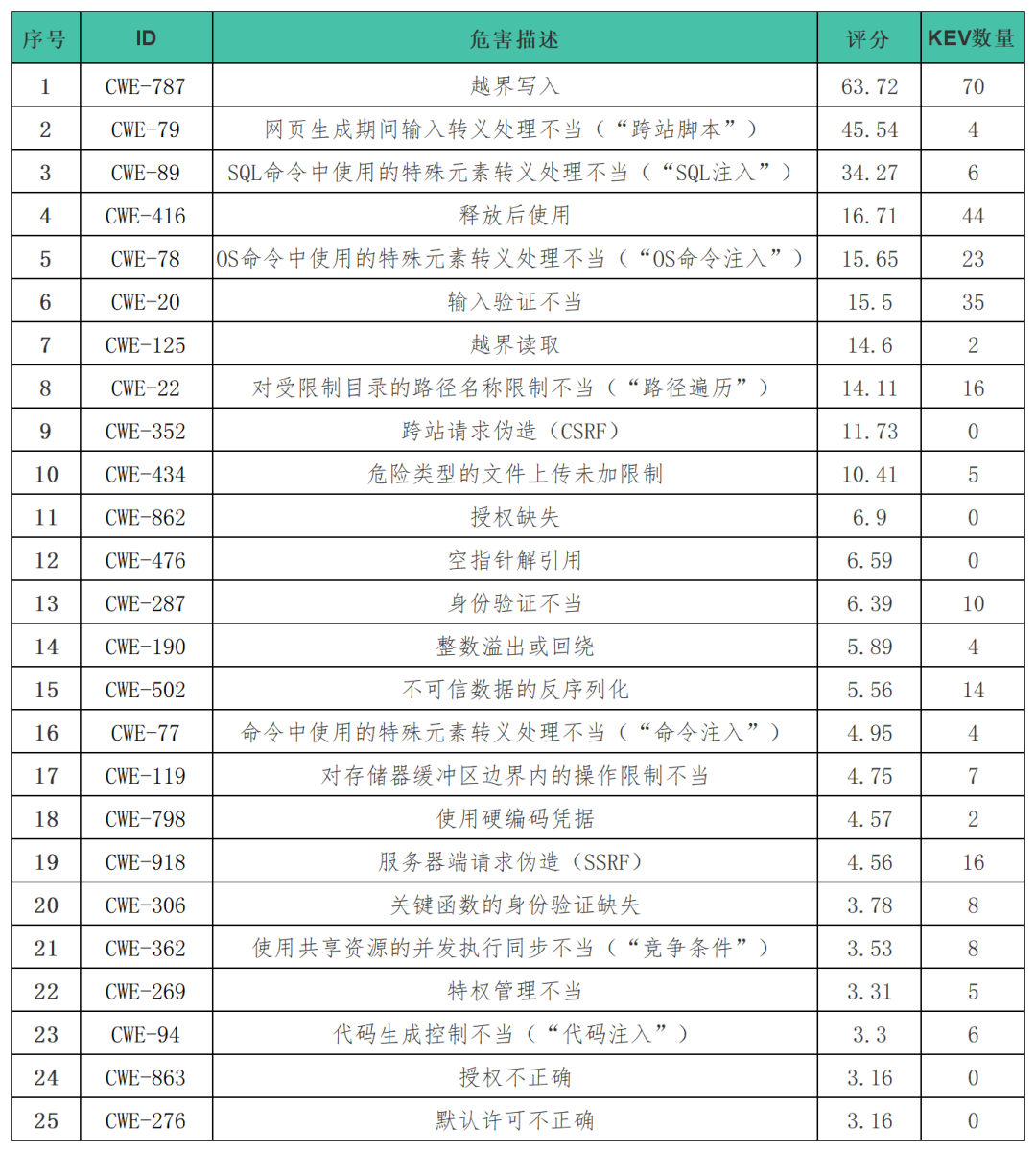MITRE发布软件安全缺陷Top25清单(2023版)