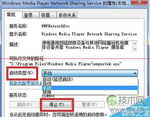 5、在打开的属性界面中,将启动类型修改成“手动”,服务状态修改成“停止”,点击“确定”保存后退出即可,