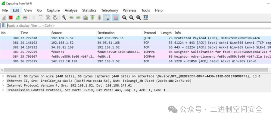 全面的协议支持:广泛的协议兼容性可以检查各种网络通信以进行彻底的安全评估。用户友好的界面: Wireshark的自然界面简化了数据包分析的复杂任务,并使其可供广泛的用户(尤其是初学者)使用。强大的过滤功能:强大的过滤选项使Wireshark能够精确关注特定数据,提高威胁检测效率。故障排除必不可少: Wireshark 是一种重要的故障排除工具,可通过提供数据交换的详细视图来帮助识别和解决网络问题。下载地址:https://www.wireshark.org/download.html