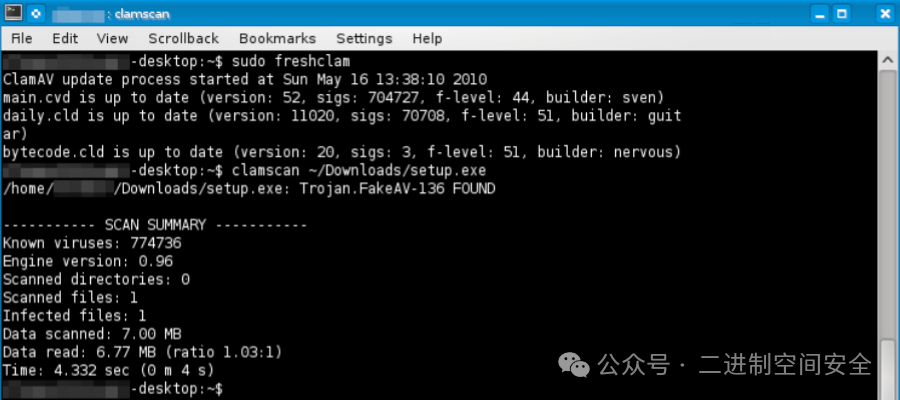 ClamAV(https://www.clamav.net/)是一款开源防病毒工具,以其有效的恶意软件检测功能而闻名。由于它是跨平台的,因此主要用于邮件服务器,提供实时扫描和自动更新,以保护系统免受大多数已知威胁的侵害。
