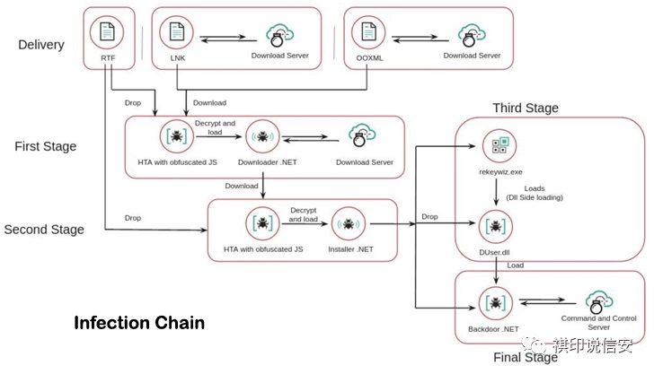 此外,SideWinder 的工具集采用了几个复杂的混淆例程、为每个恶意文件使用唯一密钥进行加密、多层恶意软件以及将命令和控制 (C2) 基础设施字符串拆分为不同的恶意软件组件。