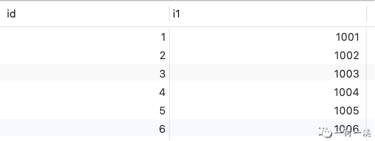 复制CREATE TABLE `t6` ( `id` int unsigned NOT NULL AUTO_INCREMENT,唯索 `i1` int unsigned NOT NULL DEFAULT 0, PRIMARY KEY (`id`), UNIQUE KEY `uniq_i1` (`i1`) ) ENGINE=InnoDB DEFAULT CHARSET=utf8mb3;1.2.3.4.5.6.插入测试数据: