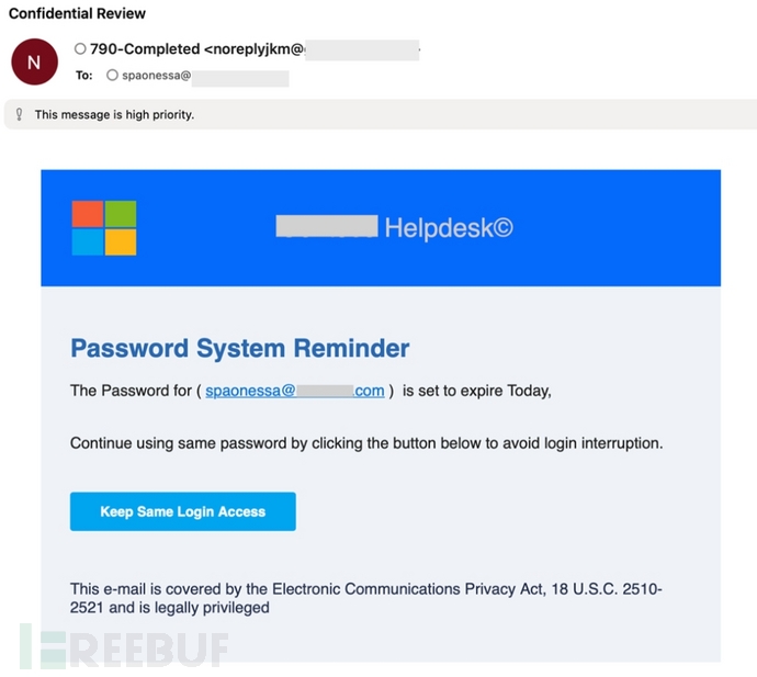 在目标域被标记为恶意域之前,这些 URL 将在多个用户的点击中无限期地发挥作用。 一些使用这种技术的钓鱼电子邮件可以伪装成微软的密码修改提醒或 DocuSign 的文档签名请求。