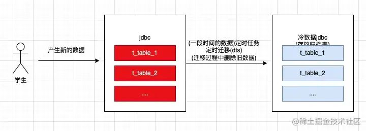 为什么要冷热归档:其实原因和方案二类似,都是降低单表数据量,树的高度变低,查询经历的磁盘io变少,则可以提高效率 如果大家的业务数据,有明显的冷热区分,比如:只需要展示近一周或一个月的数据。那么这种情况这一周喝一个月的数据我们称之为热数据,其余数据为冷数据。那么我们可以将冷数据归档在其他的库表中,提高我们热数据的操作效率。