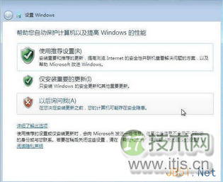 (13) 系统更新设置。选择默认的“使用推荐设置”,如图(8)所示: