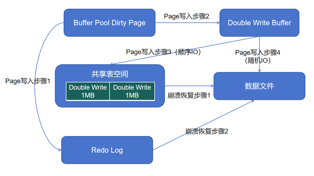 如果在这个过程中遇到系统崩溃或者服务器宕机,就会导致四个文件系统的 Page 没有全部写完,从而出现 MySQL InnoDB 的 Page 损坏的情况,而 Double Write 机制则正是为了解决这个问题。