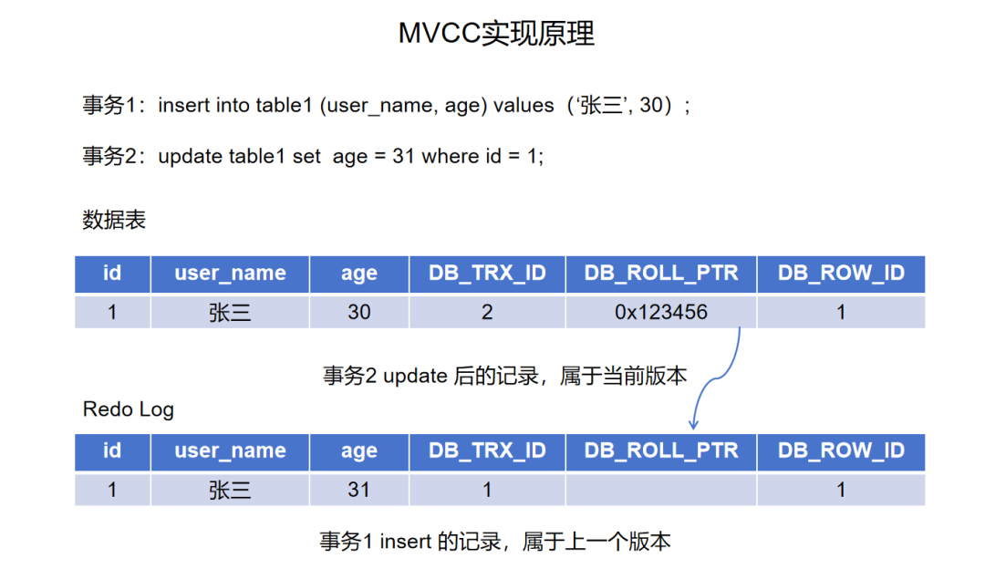复制SELECT * FROM table1 FOR UPDATE; SELECT * FROM table1 LOCK IN SHARE MODE;1.2.当前读的隔离性仍然是通过锁机制来实现的,而快照读则是MVCC(多版本并发控制)。