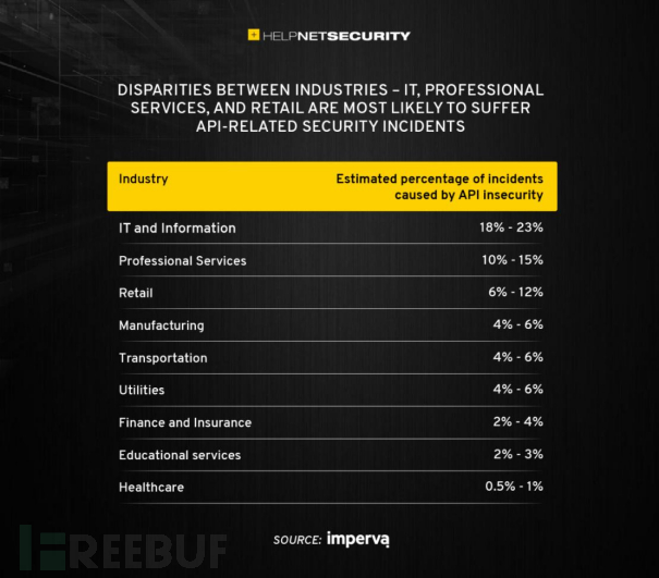 另外,该研究还发现了行业之间也存在巨大差异,信息技术、专业服务和零售业等行业最有可能遭受与 API 相关的安全事件。