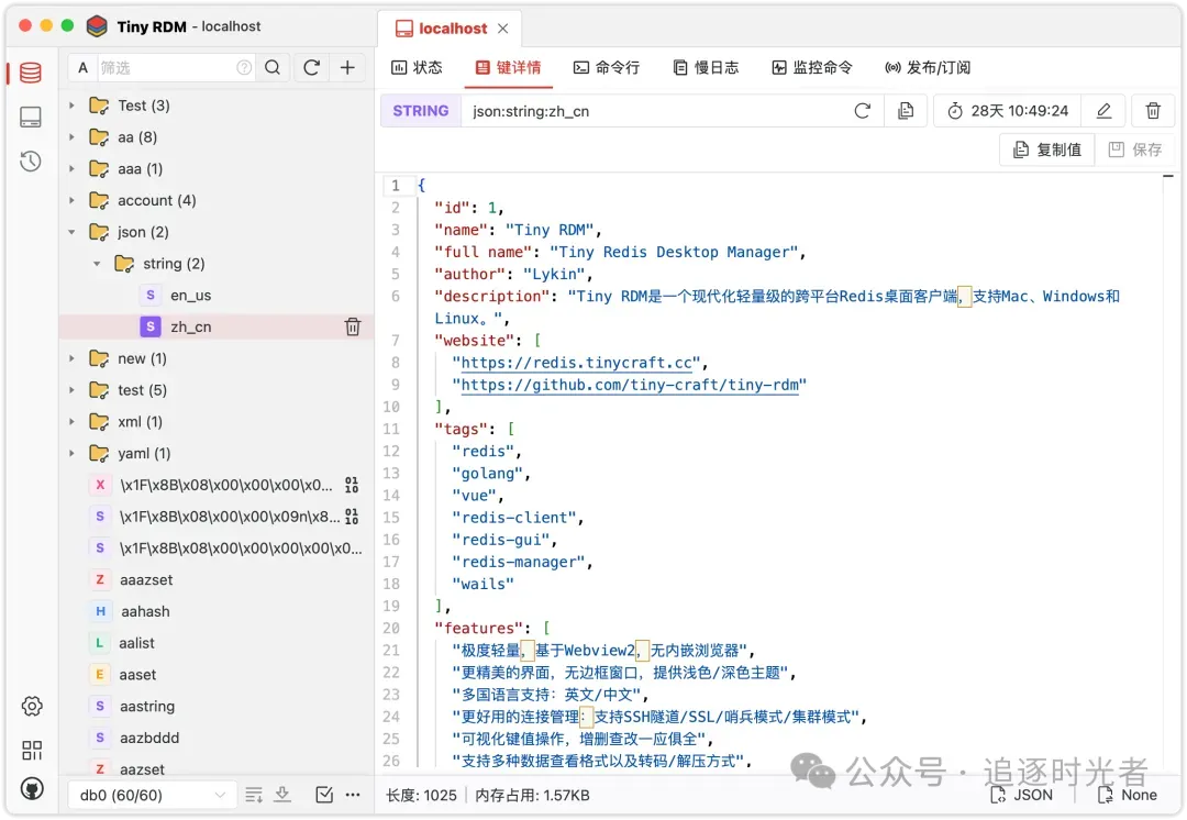支持哨兵,WordPress模板集群,ssh通道,ssl认证,stream,subscribe订阅,树状视图,命令行,以及暗黑模式;支持多种格式化方式,甚至能够自定义格式化脚本,满足你的一切需求。
