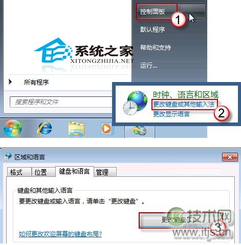 1. 依次单击“开始”--“控制面板”--“更改键盘或其它输入法”--“更改键盘”;