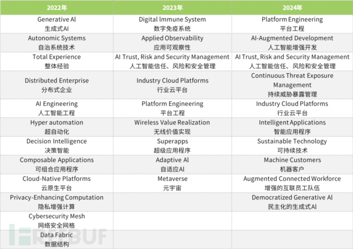 2023年10月16日,络安Gartner在其官网发布了《Gartner Identifies the Top 10 Strategic Technology Trends for 2024》主题文章,势简介绍了相关分析师在奥兰多IT Symposium/Xpo 2023峰会上发布的年网2024年十大战略技术趋势。我们汇总了最近3年的络安技术趋势并进行了整理,详见下表1。势简