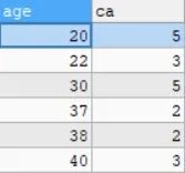 复制SELECT age,执行COUNT(age) ca FROM db_staff GROUP BY age;1.查询结果如下图:
