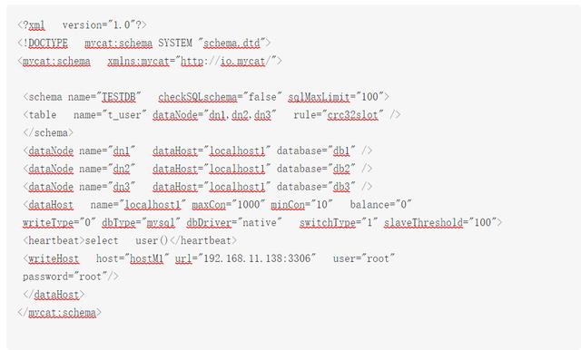 用于定义逻辑库和逻辑表的配置文件.在配置文件中可以定义读写分离,逻辑库,逻辑表,dataHost,dataNode等信息.
