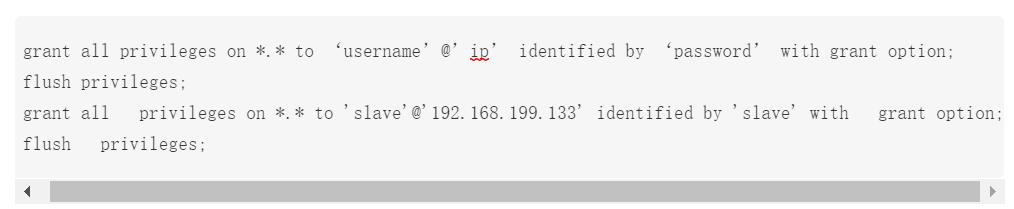 ip地址不能写为%. 因为主从备份中,当前创建的用户,是给从库Slave访问主库Master使用的.用户必须有指定的访问地址.不能是通用地址.