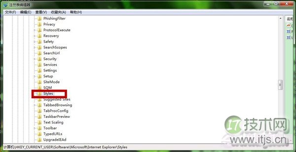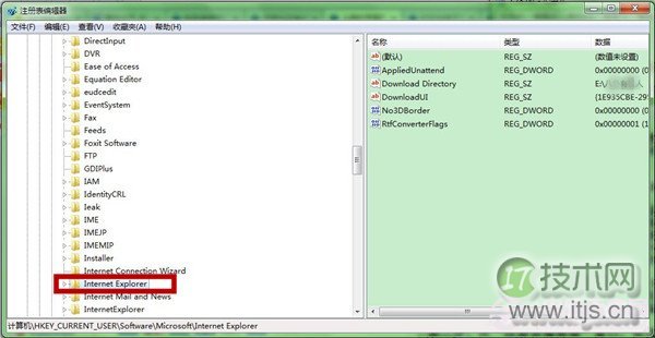 第二步、否停在“注册表编辑器”窗口,依次找到[HKEY_CURRENT_USERSoftwareMicrosoftInternet Explorer]。