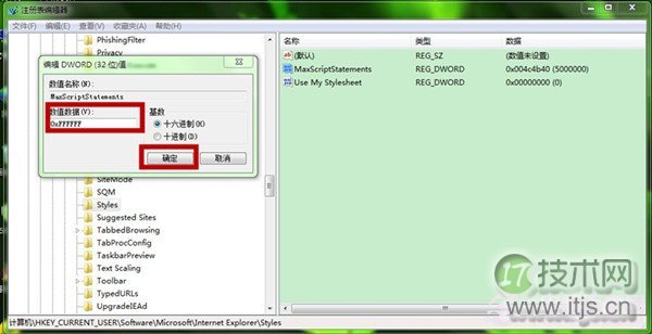 第七步、双击“MaxScriptStatements”,把其“数值数据”修改为“0xFFFFFFFF”再点击“确定”即可保存。