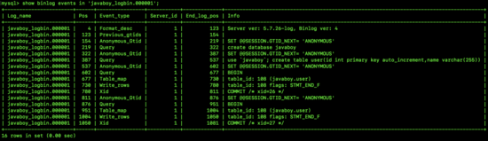 复制show binlog events in javaboy_logbin.000001;1.