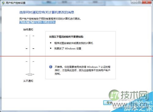 7、这样我们就关闭了烦人的UAC提醒功能。不过同时,机器对间谍软件的防护功能也就低了一级。