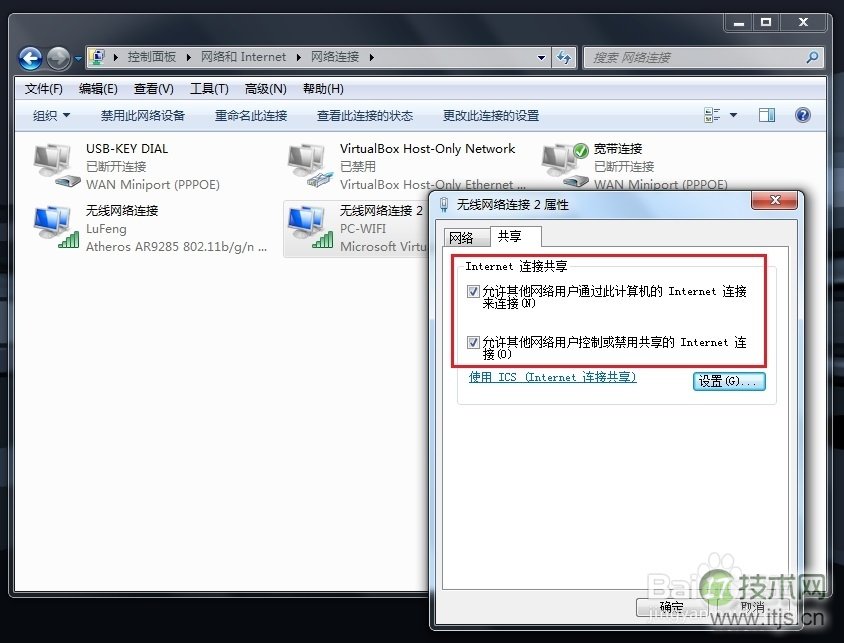 a.在“控制面板”——“网络和Internet”——“网络连接”里找到刚才建立的无线连接“PC-WIFI”