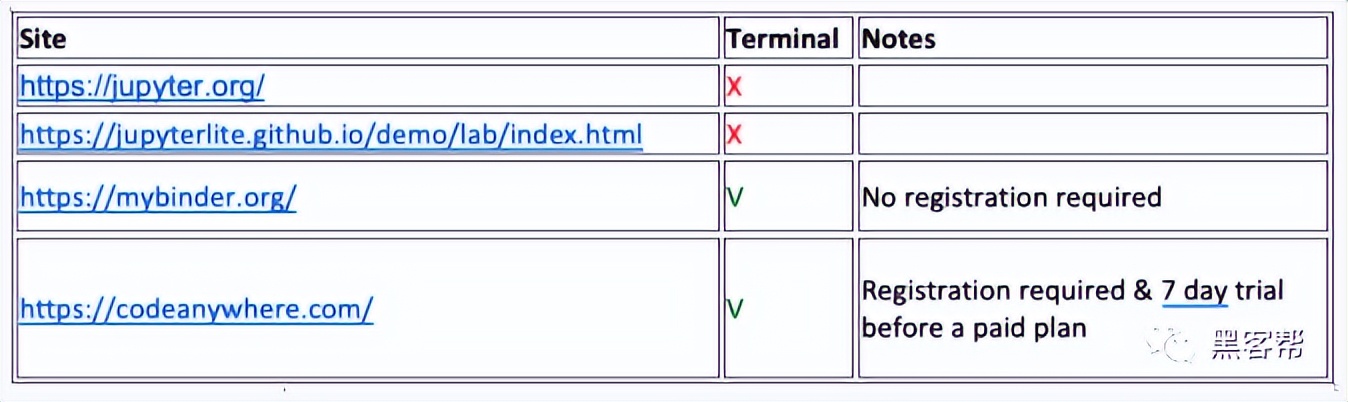 另一个提供终端的平台是 Binder ,这 是一个在由志愿者管理的开放基础设施上运行的项目 。该服务使托管在其他基础设施(GitHub、GitLab)上的存储库可供用户通过浏览器使用。