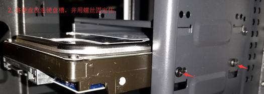 7.插入硬盘:将购买的硬盘插入扩展槽中,并使用螺丝固定在机箱上。