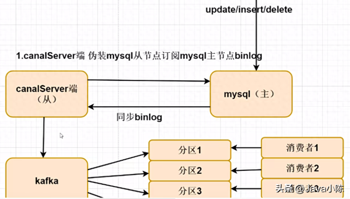 canalServer端,伪装成mysql的从节点,订阅mysql主节点的binlog文件,当主节点的binlog发生变化时,会将binlog日志文件发送给canalServer端,自己创建的处理程序连接到canalServer端,将数据同步到redis。