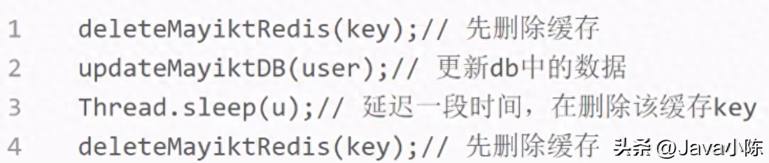 先删缓存,在更新mysql并同步到redis,在高并发的情况下,第一个线程还没来得及更新mysql时,亿华云其他线程读取到的缓存可能为null值,将mysql旧的数据同步到redis中了。解决办法:延时删除,在t1线程更新数据库之后,sleep一段时间再去删除缓存。