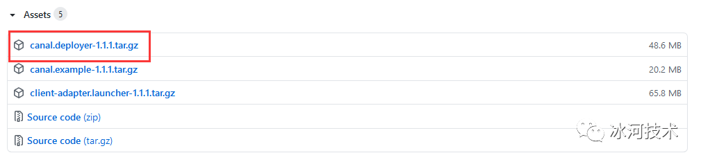 下载Canal这里,我们以Canal 1.1.1版本进行说明,小伙伴们可以到链接 https://github.com/alibaba/canal/releases/tag/canal-1.1.1 下载Canal 1.1.1版本。