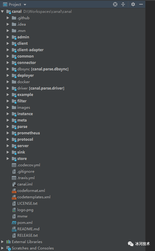 导入并修改源码这里,我们使用Canal的源码进行测试,下载Canal的源码后,将其导入到IDEA中。