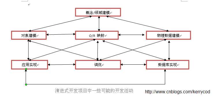 作者提到了大多数面向数据技术本质上都是串行的。诸如逻辑数据建模或物理数据建模。希望数据库DBA采用类似开发者使用的现代演进式技术来开发,并能从中获益。作者提供了一幅图关于在一些关键开发活动中的高层视图,这些活动发生在涉及对象和关系数据库的现代项目中。请注意,所有的箭头都是双向的。你需要在这些活动之间来回迭代。同时注意没有定义起点和终点——显然这不是传统的串行式过程。