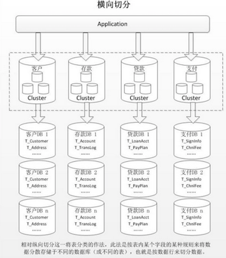 部分表无法join,只能通过接口聚合方式解决,提升了开发的复杂度分布式事务处理复杂依然存在单表数据量过大的问题(需要水平切分)2、水平(横向)切分