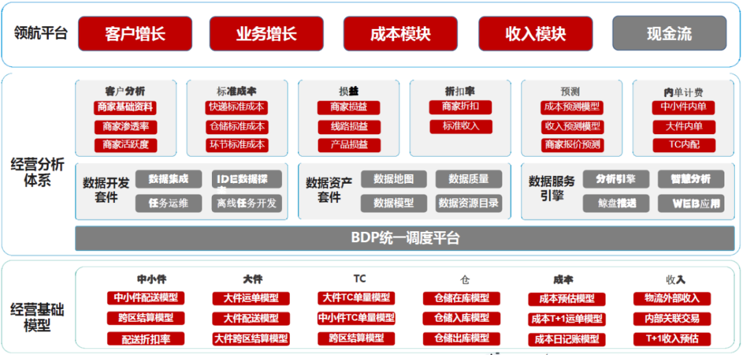 每个公司的业务数据和财务数据是天然割裂的状态。举例来说,服务器租用一家全国规模的连锁店,每个店的店员的薪资和日程运营的费用(如水电费)怎么来反映到每一单上面去,如何把业务数据和财务数据打通,这有点像银行的分润,把业务数据规范到每一个环节对应的每个功能点上去,即成本因素和收支因素的影响点,再把数据再给分担上去。这也就是基础模型搭建的一个过程,最终会支撑到上游资金分析体系的客户的分析和成本支持。