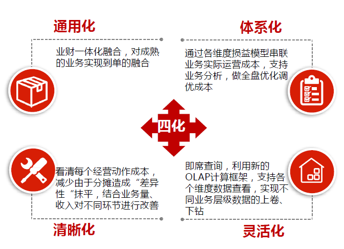 标准化后的管理侧数据口径、颗粒度及维度将全面满足企业对精细化、实时化业财分析的要求,为业务财务出具专业的分析与报告提供数据支撑。同时,可复用的、具备公共能力的标准数据将支持企业在价值链条上建立多维分析架构,利用多层次、可交叉的分析直接加强企业对业务信息的钻取能力,推动业务洞察和管理智能化。