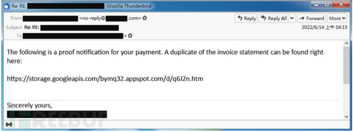通过钓鱼邮件投递Dropper 可以通过钓鱼邮件以三种方式传播,中出例如: