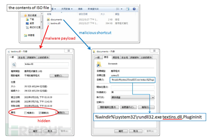 恶意 DLL 文件与 LNK 文件都在 ISO 文件中