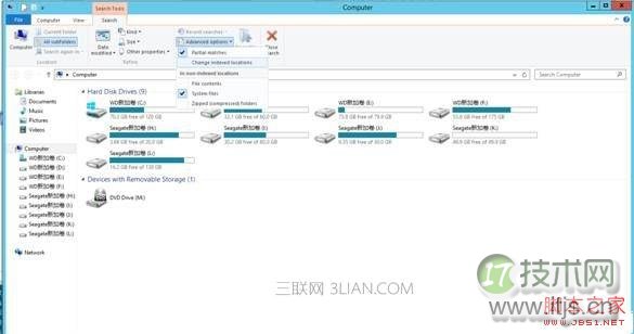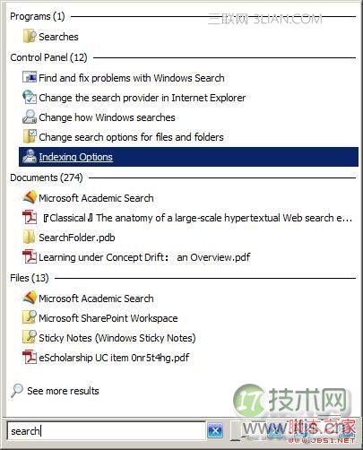 1、配置Windows 7下面:搜索栏输入search ===>点击 Indexing Options