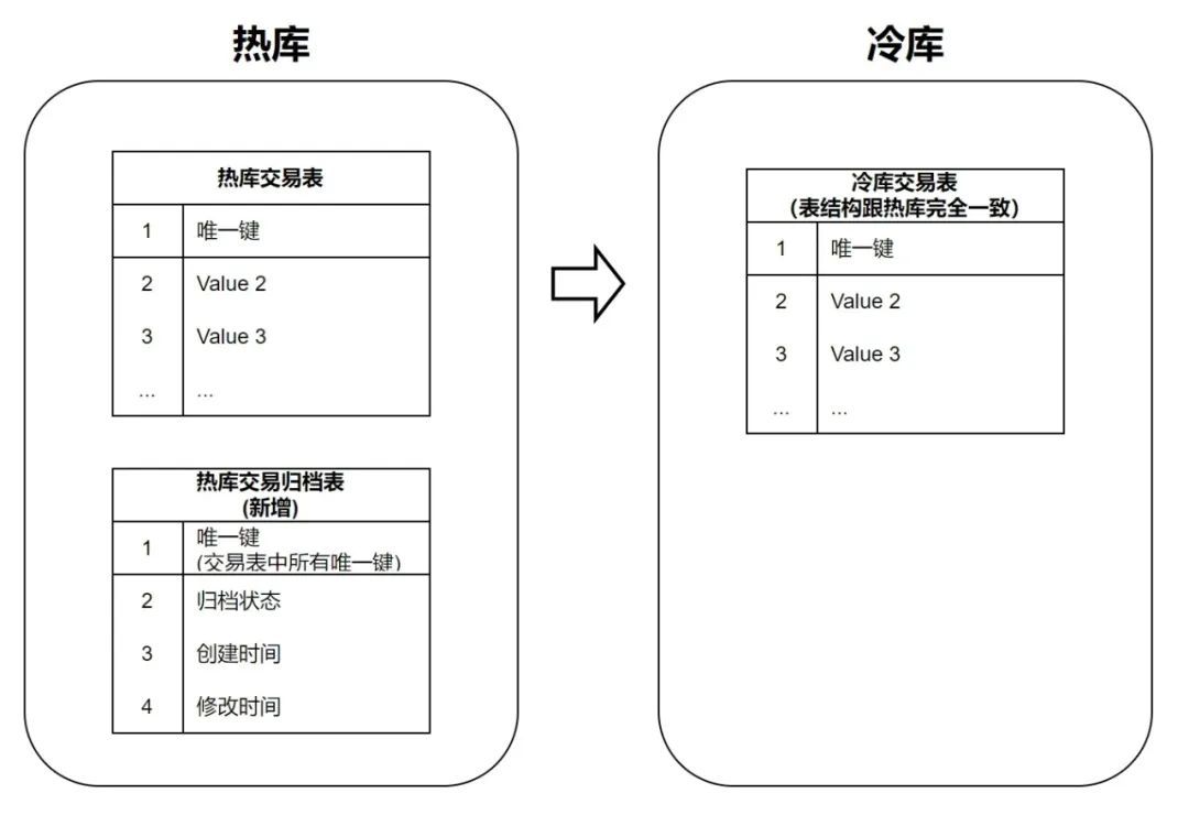 冷库无 update 操作,所有的更新操作必须在热库进行,如果数据需要更新并且仅在冷库存在,需同步到热库后,再在热库完成更新。冷库热库数据同时存在时,以热库数据为准。冷库的数据来源只有热库数据同步到冷库。数据从冷库同步到热库时,操作归档表和交易表需保证在同一个是事务内完成,涉及到的查询必须使用写库。数据查询准确性: