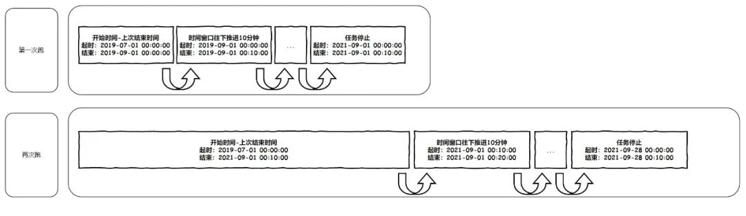 }1.2.3.4.5.6.7.8.9.10.11.12.13.14.15.16.17.18.19.20.21.22.23.24.25.26.27.28.29.30.31.32.33.34.35.36.37.38.39.40.41.42.43.44.归档任务查询时间滚动机制:时间范围第一次起始时间为固定日期(财经支付订单最早点日期),结束时间为指定日期,下次开始时间等于上次结束时间,结束时间为上次结束时间加上指定时间范围)。每次查询下一个时间窗口时 redis 保存信息,指定日期,当天任务的时间范围,分页数。